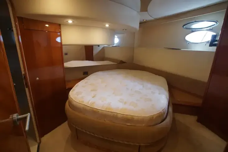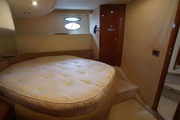 1996 Azimut 54 with twin MTU 8V 183 TE 93 Diesel engines (765hp each). Stylish Flybridge available from the renowned Italian yard. Entertaining space is plentiful, thanks to a large flybridge which offers ample seating and views for operating the second helm position. The large cockpit has access on both the port and starboard side to the extended bathing platform as well as a dedicated seating area. There is also room for free standing furniture if required. This blends nicely into a Saloon which boasts high quality gloss wood, comfortable seating and lots of natural light through the extensive windows in the superstructure. The galley down layout houses several appliances such as dishwasher, microwave, ceramic hob and large fridge/freezer. There is also access to the rear part of the engine room. Moving forward she has a commanding lower helm station with large captain's chair, with easy access to all navigational aids.